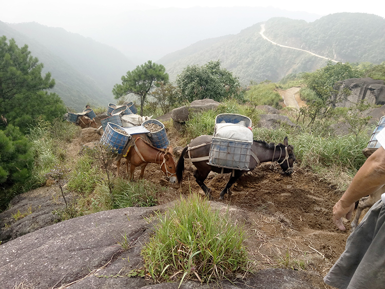 骡马驮运平地栈道建材上山
