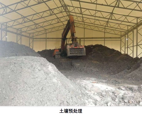 项目概况:污染土壤面积约8000 m2,12800m3氯苯和多环芳烃污染土壤。工期共120日历天。